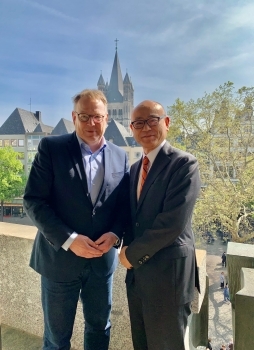 角田総領事のブルメスター・ケルン市長表敬(令和8年4月24日) 令和8年4月27日 4月24日、角田総領事はブルメスター・ケルン市長を表敬訪問しました。 ケルン市はNRW州最大の都市であり、1963年に京都市と姉妹都市連携を結び、60年以上にわたり交流しています。両者は今後の同市と日本との関係強化について意見交換を行いました。